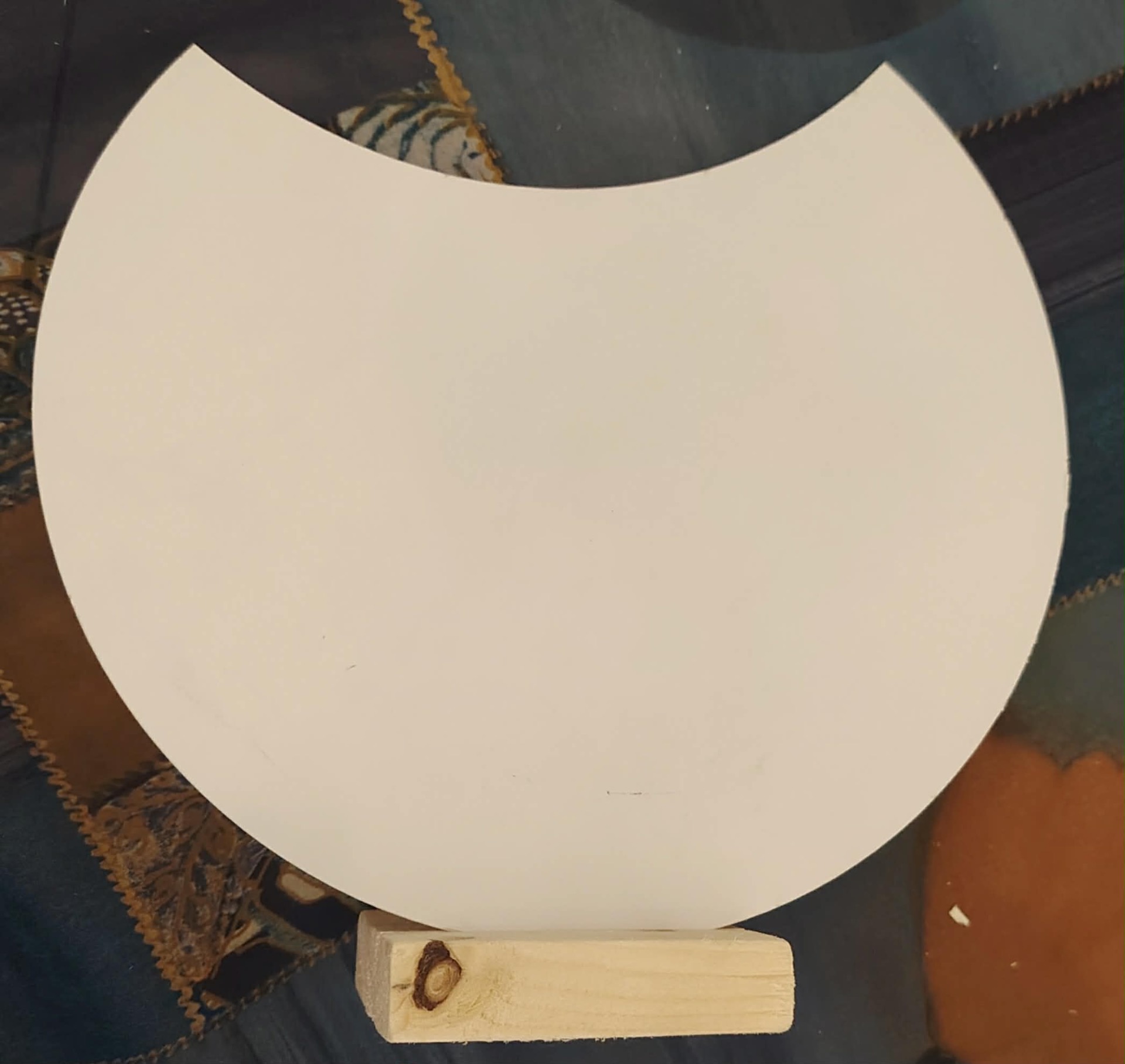 Méret: 25 cm kör vágott széllel, fa talppal.